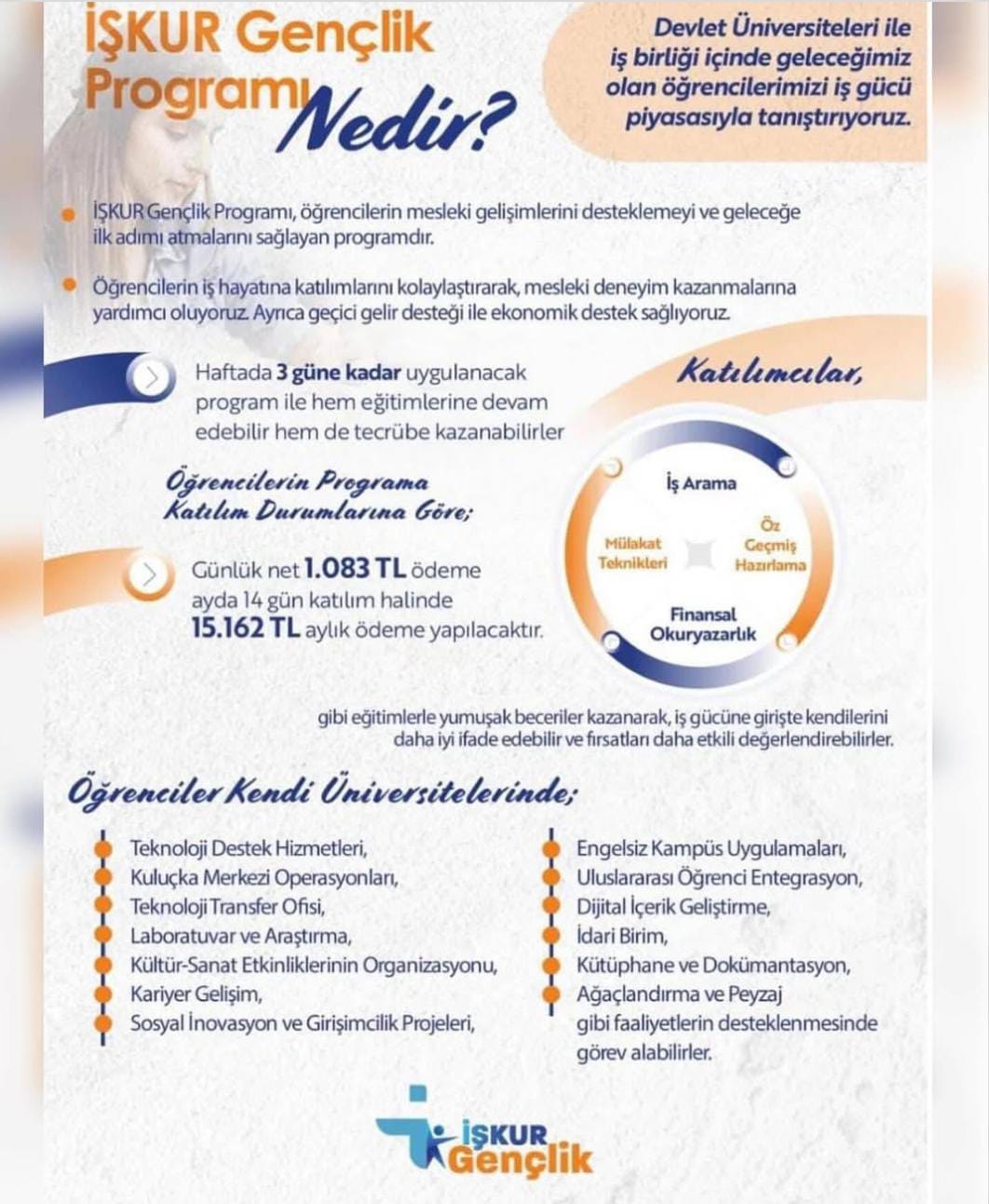 TÜRKİYE İŞ KURUMU TARAFINDAN DEVLET ÜNİVERSİTELERİ İLE DÜZENLENEN İŞKUR GENÇLİK PROGRAMINI BAŞVURULARI BAŞLADI