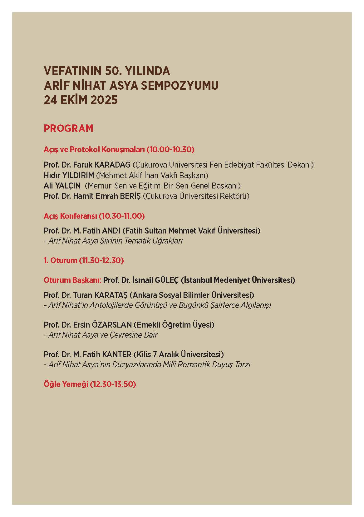 Vefatının 50. Yılında Arif Nihat Asya Sempozyumu
