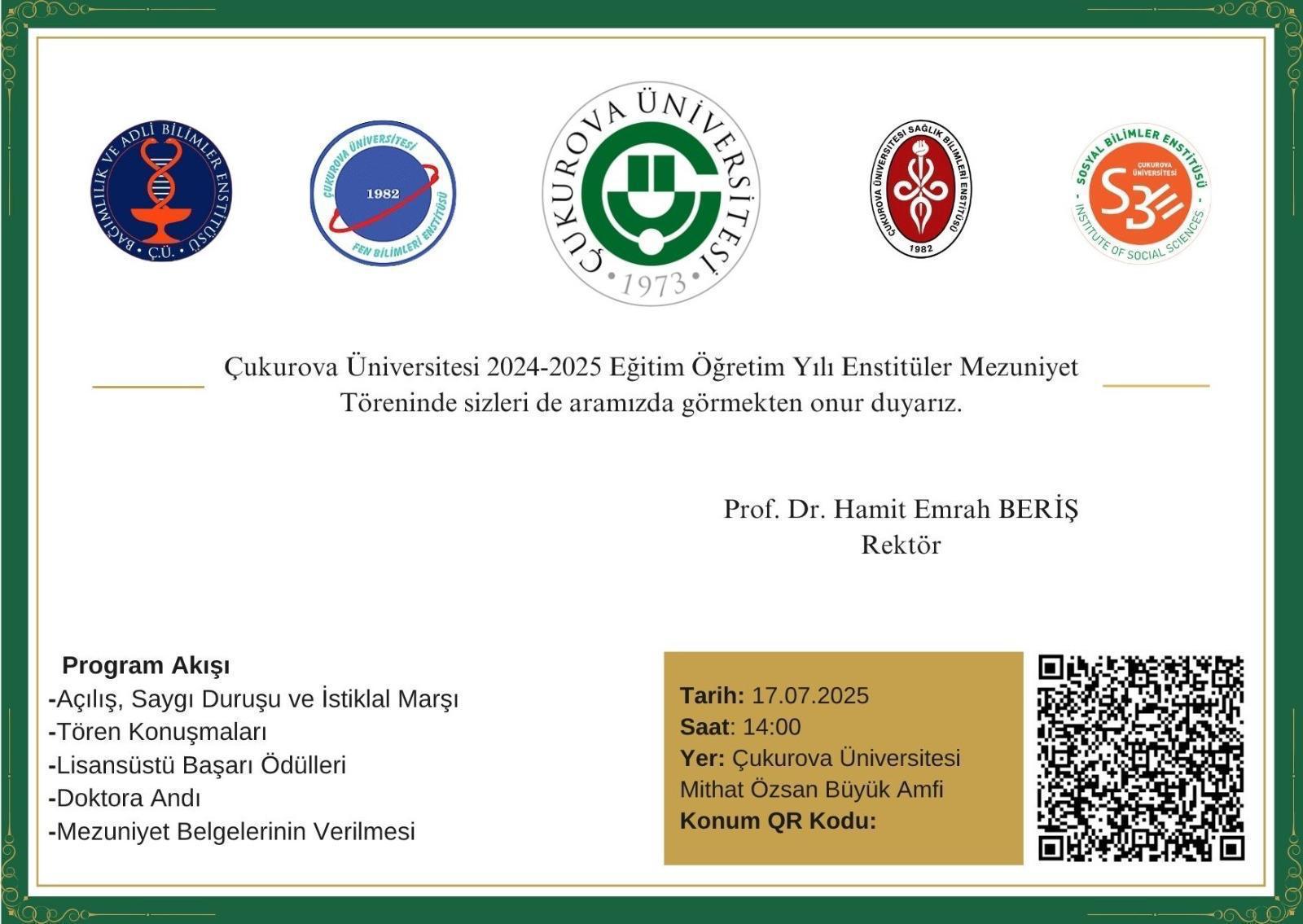 Çukurova Üniversitesi 2024-2025 Eğitim Öğretim Yılı Enstitüler Mezuniyet Töreni