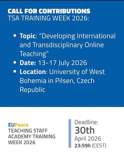 EUPeace Alliance, EUPeace 2026 Konferansı kapsamında düzenlenecek Creative Spaces etkinlikleri için başvuru çağrısını açtı. Etkinlikler, 30 Eylül 2026 tarihinde İtalya’nın Rende kentindeki Calabria Üniversitesi’nde gerçekleştirilecek.