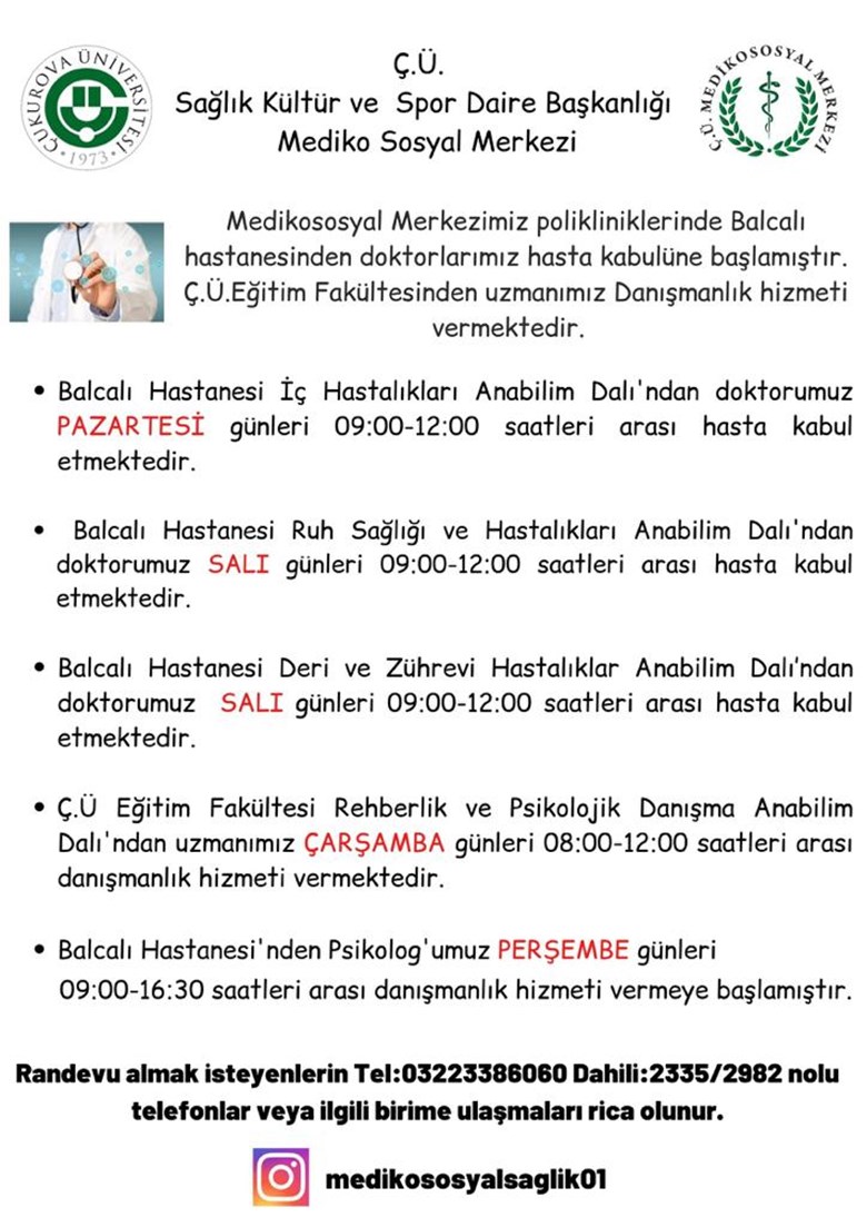 Ç.Ü. Medikososyal Merkezi Poliklinik ve Danışmanlık Hizmetleri