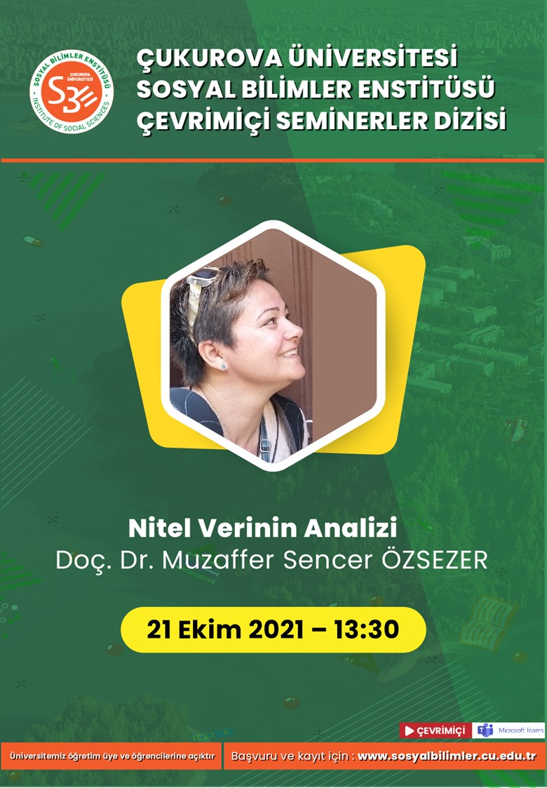 Seminere kayıt ve katılım için tıklayınız: https://sosyalbilimler.cu.edu.tr/cu/Seminerler/ekim-2021/nitel-verinin-analizi