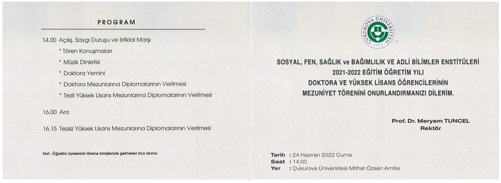 Sosyal, Fen, Sağlık ve Bağımlılık ve Adli Bilimler Enstitüleri 2021 - 2022 Mezuniyet Töreni