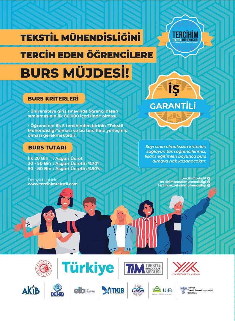 TEKSTİL VE KONFEKSİYON İHRACATÇI BİRLİKLERİ TARAFINDAN TERCİHİM TEKSTİL MÜHENDİSLİĞİ PROJESİ KAPSAMINDA TEKSTİL MÜHENDİSLĞİNİ TERCİH EDECEK ÖĞRENCİLERE BURS VERİLECEKTİR