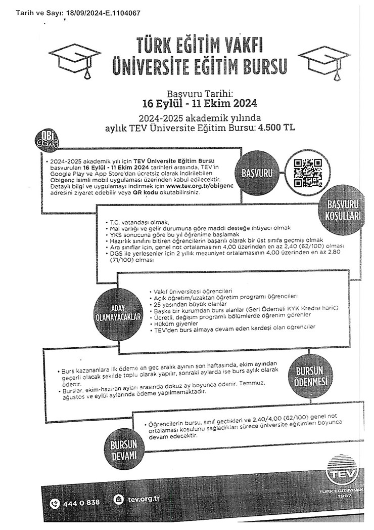 TEV Yüksek Lisans Doktora Burs Duyurusu ⇒