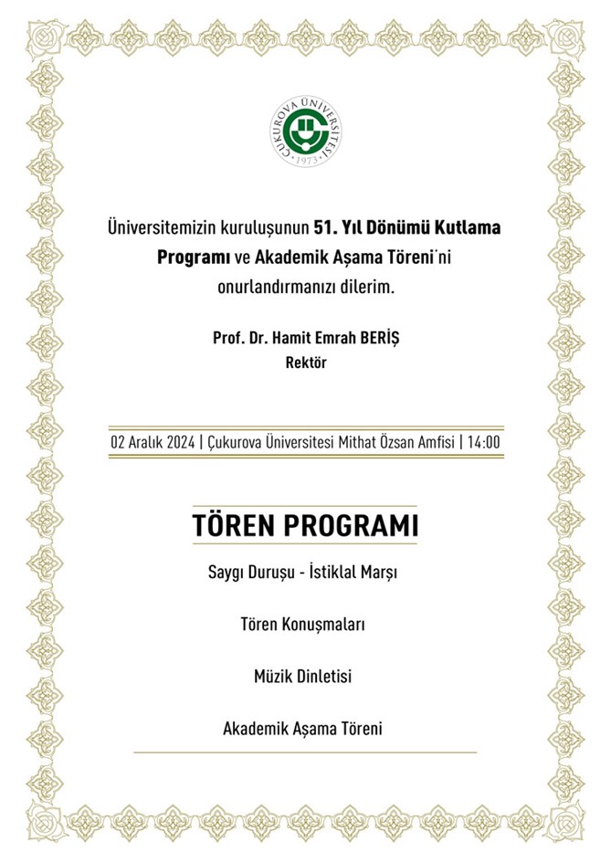 Üniversitemizin Kuruluşunun 51. Yıl Dönümü Kutlama Programı ve Akademik Aşama Töreni