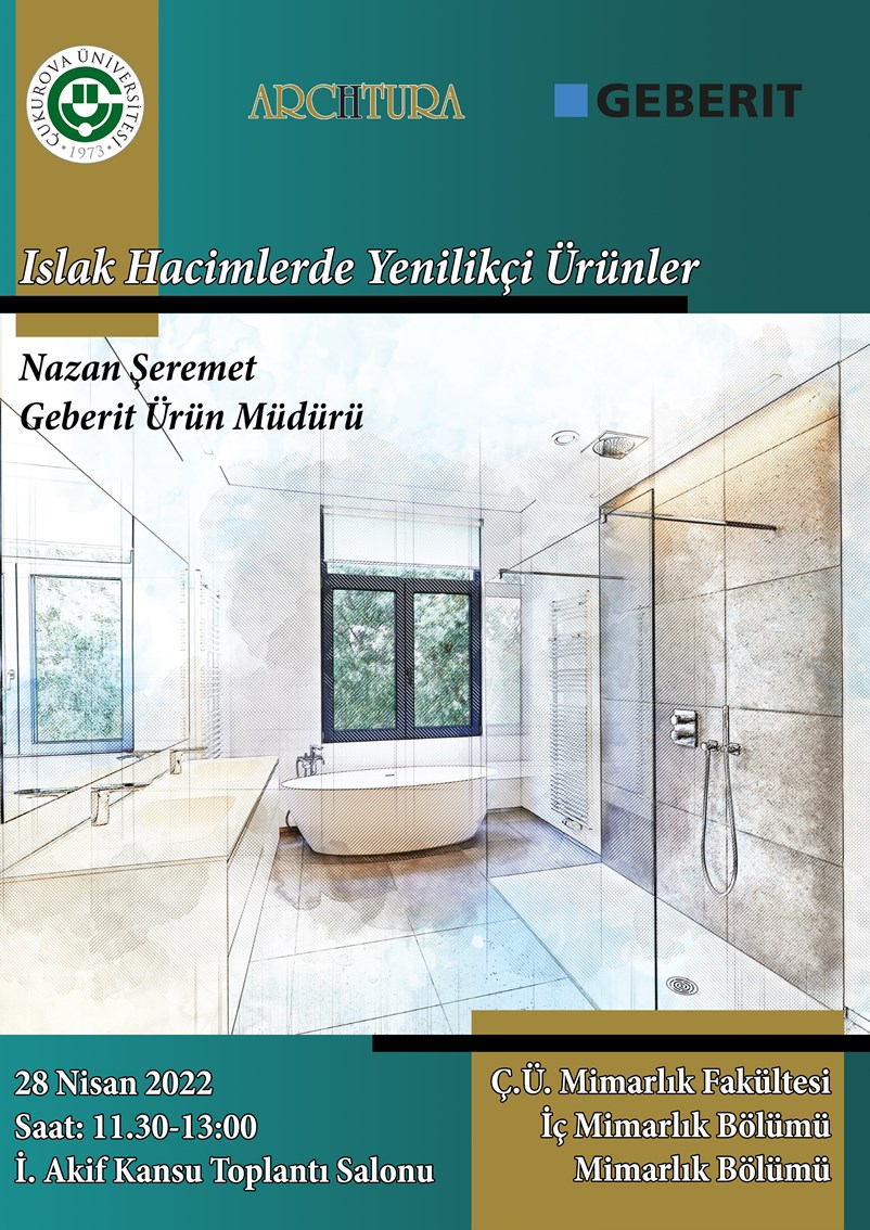 İç Mimarlık Bölümü ve Mimarlık Bölümünün ortak olarak düzenlediği etkinlik kapsamında, sıhhi ürünler alanında Avrupa pazar lideri Geberit'in Ürün Müdürü Sn. Nazan Seremet tarafından, Islak Hacimlerde Yenilikçi Ürünler başlıklı konuşma gerçekleştirilecektir.
